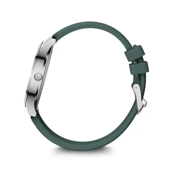 Priemer puzdra 42 mm z ocele ponúka vyvážený pomer elegancie a športového štýlu. Váha 61,7 g zaručuje pohodlné nosenie počas celého dňa. Analogový ciferník zdobí výrazné arabské číslice a indexy, ktoré zabezpečujú prehľadnosť. Remienok široký 22 mm v zelenej farbe dotvára svieži vzhľad a strieborná spona z ocele zabezpečí bezpečné uchytenie.