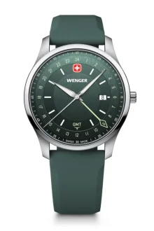 7611160297419Moderné pánske hodinky Wenger 01.1442.101 v zelenej farbe zaujmú športovým štýlom a funkciami duálneho času aj dátumu. Minerálne sklo so safírovou vrstvou, Super-LumiNova® a vodotesnosťou 50M zabezpečia odolnosť a spoľahlivosť v každej situácii. viac