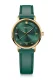 Tieto hodinky kombinujú spoločenský a športový štýl, takže vyniknú v kancelárii, na večierku aj počas voľného času. Priemer puzdra 35 mm a výška 7,8 mm zabezpečujú ideálne proporcie na dámskom zápästí, obvod remienka je možné nastaviť od 12 do 17 cm. Elegantný zelený remienok s klasickou sponou podčiarkuje osobitý charakter modelu.